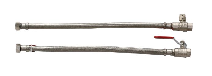 2 flex. Schläuche 1/2"x1000mm, Kugelhahn und Kugelhahn mit Sicherungskappe